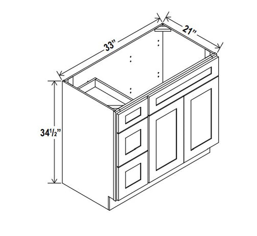 Vanity Sink Base - 33"W x 34 1/2" x 21"D - 1D, 3 Left DRW