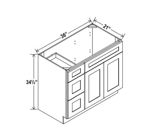 Vanity Sink Base - 36"W x 34 1/2" x 21"D - 1D, 3 Left DRW