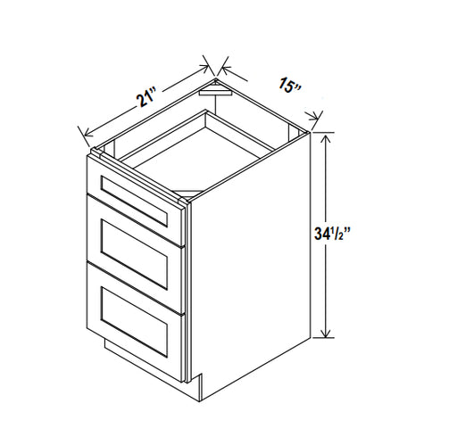 Vanity Drawer Base Cabinet - 15"W x 34 1/2"H x 21"D - 3 DRW