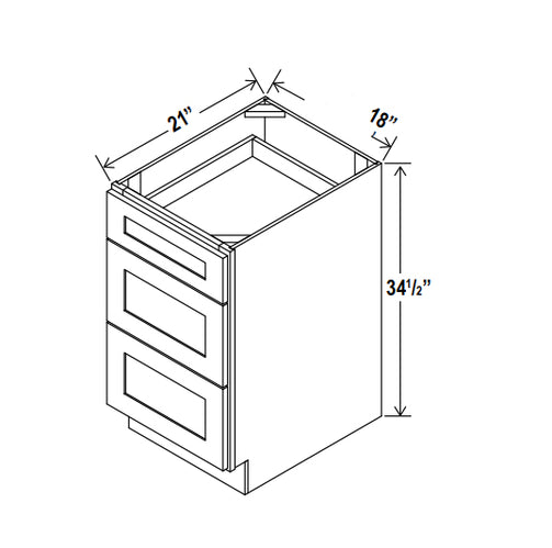 Vanity Drawer Base Cabinet - 18"W x 34 1/2"H x 21"D - 3 DRW