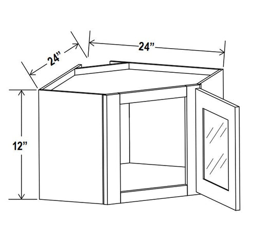 Wall Diagonal Glass Door Corner Cabinet -24"W x 12"H x 12"D - 1D -2S