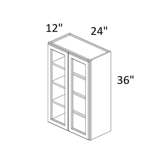 Wall Glass Door Cabinet - 24"W x 36"H x 12"D - 2D -2S