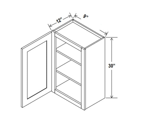 Wall Cabinet - 09"W x 30"H x 12"D - 1D -2S